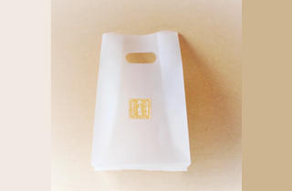 半透明プラスチック袋(ID:frost-bag)サイズ:底面 15×8 深さ 26cm 持ち手は小判型の穴