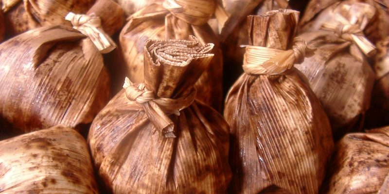 丁寧にひとつずつ竹皮に包んで蒸し上げました。