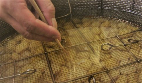 9月半ばの国産栗の出回る頃から炊き始め、春先分ぐらいまでを蜜漬けにして確保いたします。