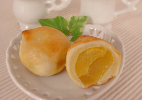栗ひとつぶ を「つなぎ」を使わずに、白あんと、バターをあわせただけのシンプルな生地でつつみました。ほこ ほこ とした焼き上り。その独特の風味が人気の理由です。